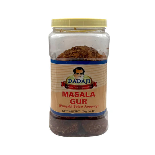 Experience the goodness of tradition with Dadaji Masala Gur, a premium spiced jaggery made from pure sugarcane juice and infused with a blend of Indian spices like dry ginger, ajwain, black pepper, and more. This 2kg pack offers a wholesome and flavourful alternative to refined sugar, with added digestive and warming benefits.