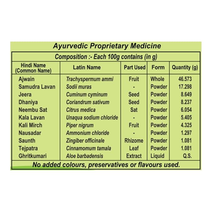 • Pachak Ajwain medicinal prowess of thymol oil and soothing goodness of aloe vera to bring you a powerful digestive.